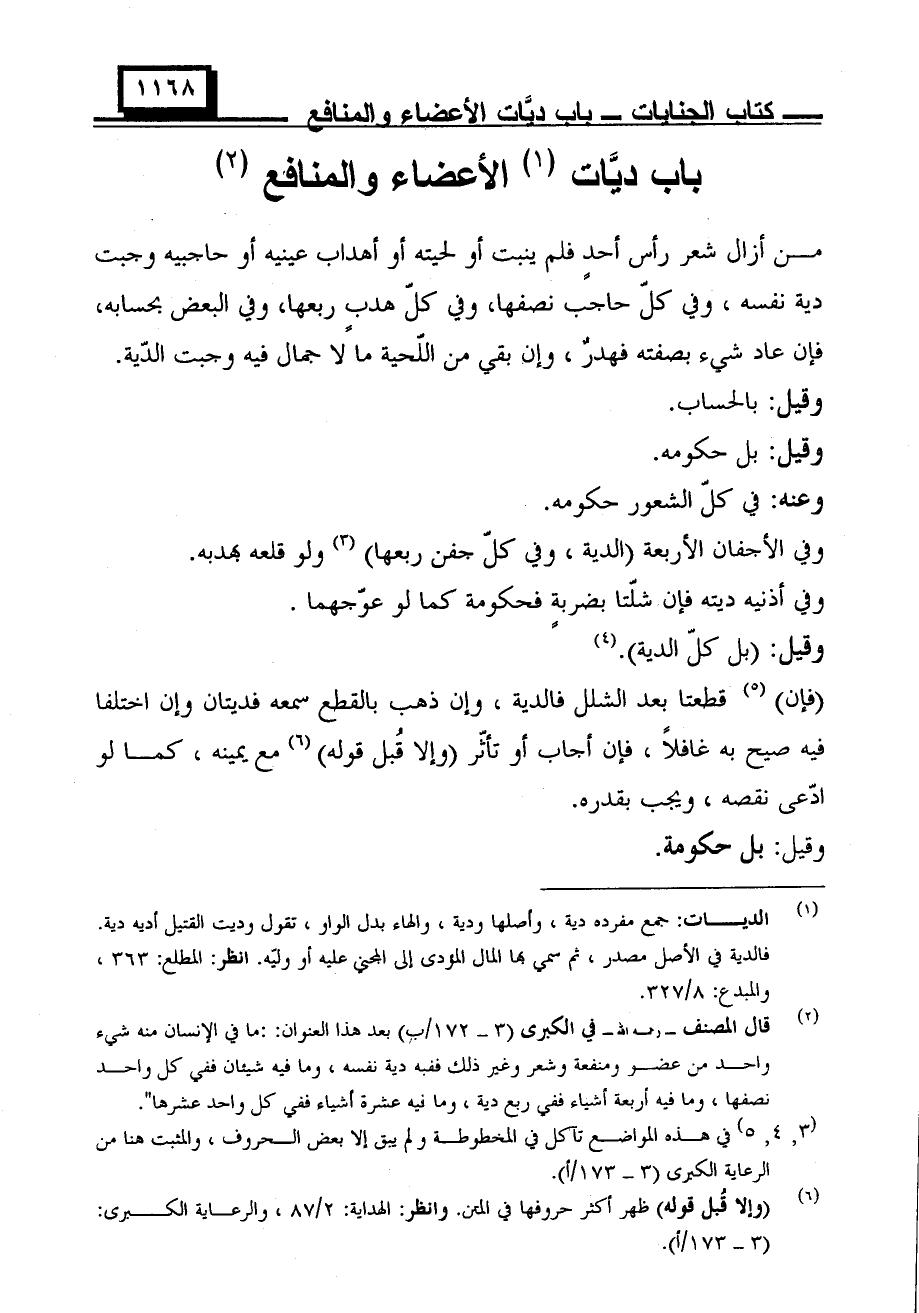 باب ديات الأعضاء والمنافع