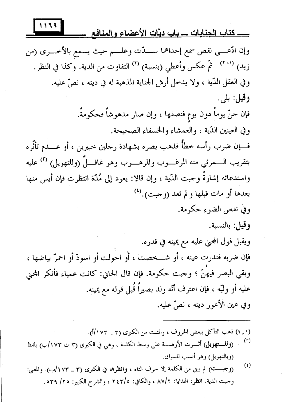فإن ضرب رأسه خطأ فذهب بصره بشهادة رجلين خبيرين، أو عدم تأثره بتقريب المرئي منه المرغوب والمرهوب وهو غافل (وللتهويل) عليه واستدعائه إشارة وجبت الدية، وإن قالا: يعود إلى مدة انتظرت فإن أيس منها بعدها أو مات قبلها ولم تعد (وجبت).