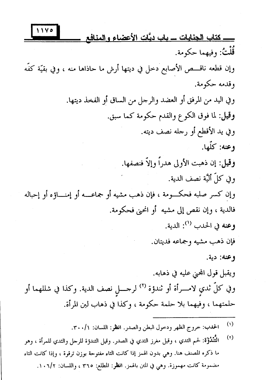 وفي اليد من المرفق أو العضد والرجل من الساق أو الفخذ ديتها.