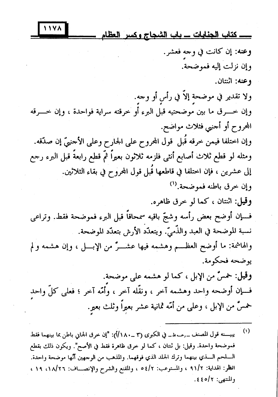 فإن أوضح بعض رأسه وشج باقيه سمحاقا قبل البرء فموضحة فقط. وتراعي نسبة الموضحة في العبد والذمي. ويتعدد الأرش بتعدد الموضحة.