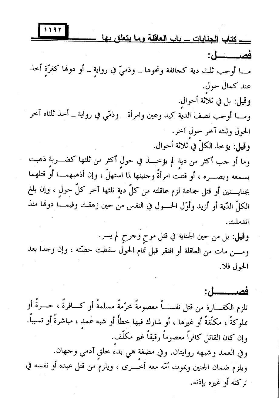 وما أوجب نصف الدية كيد وعين وامرأة- وذمي في رواية- أخذ ثلثاه آخر الحول وثلثه آخر حول آخر.