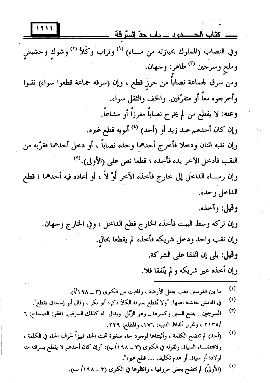 ومن سرق لجماعة نصابا من حرز قطع، وإن (سرقه جماعة قطعوا سواء) نقبوا وأخرجوه معا أو متفرقين. والخف والثقل سواء.