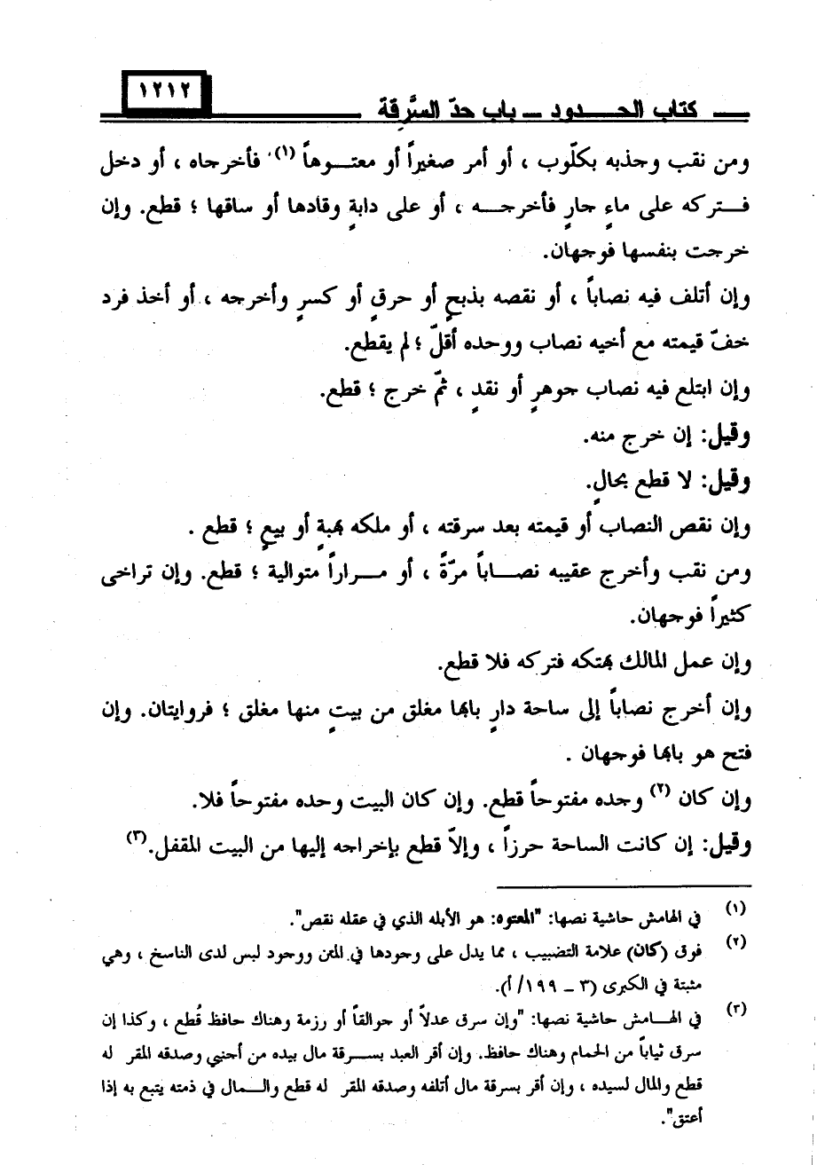 وقيل: لا قطع بحال.