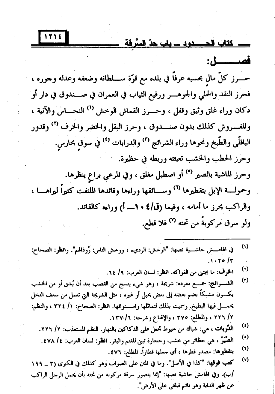 وحرز الماشية بالصير أو اصطبل مغلق، وفي المرعى براع ينظرها.