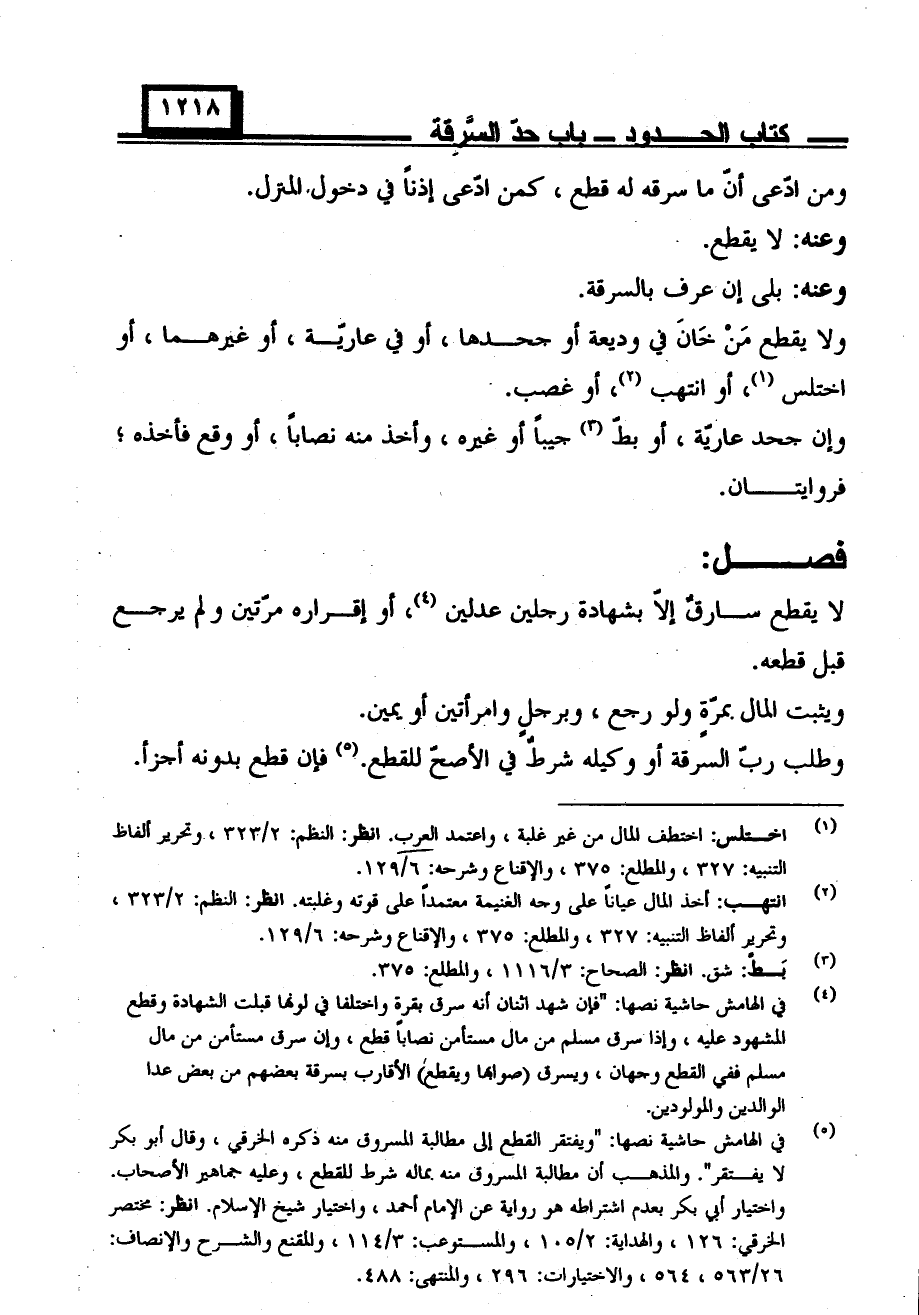 لا يقطع سارق إلا بشهادة رجلين عدلين، أو إقراره مرتين ولم يرجع قبل قطعه.
