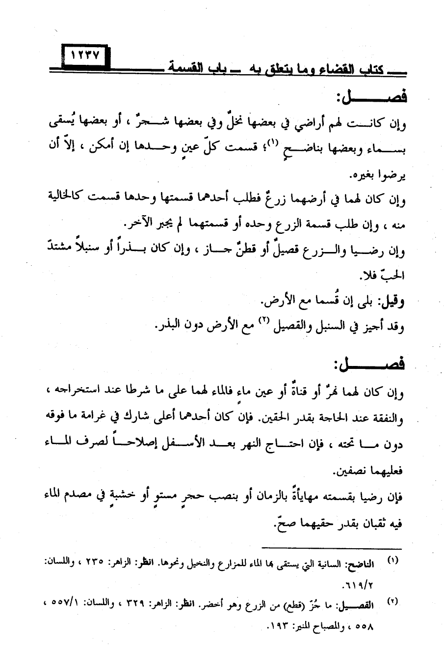 وإن كانت لهم أراضي في بعضها نخل وفي بعضها شجر، أو بعضها يسقى بسماء وبعضها بناضحٍ؛ قسمت كل عينٍ وحدها إن أمكن، إلا أن يرضوا بغيره.