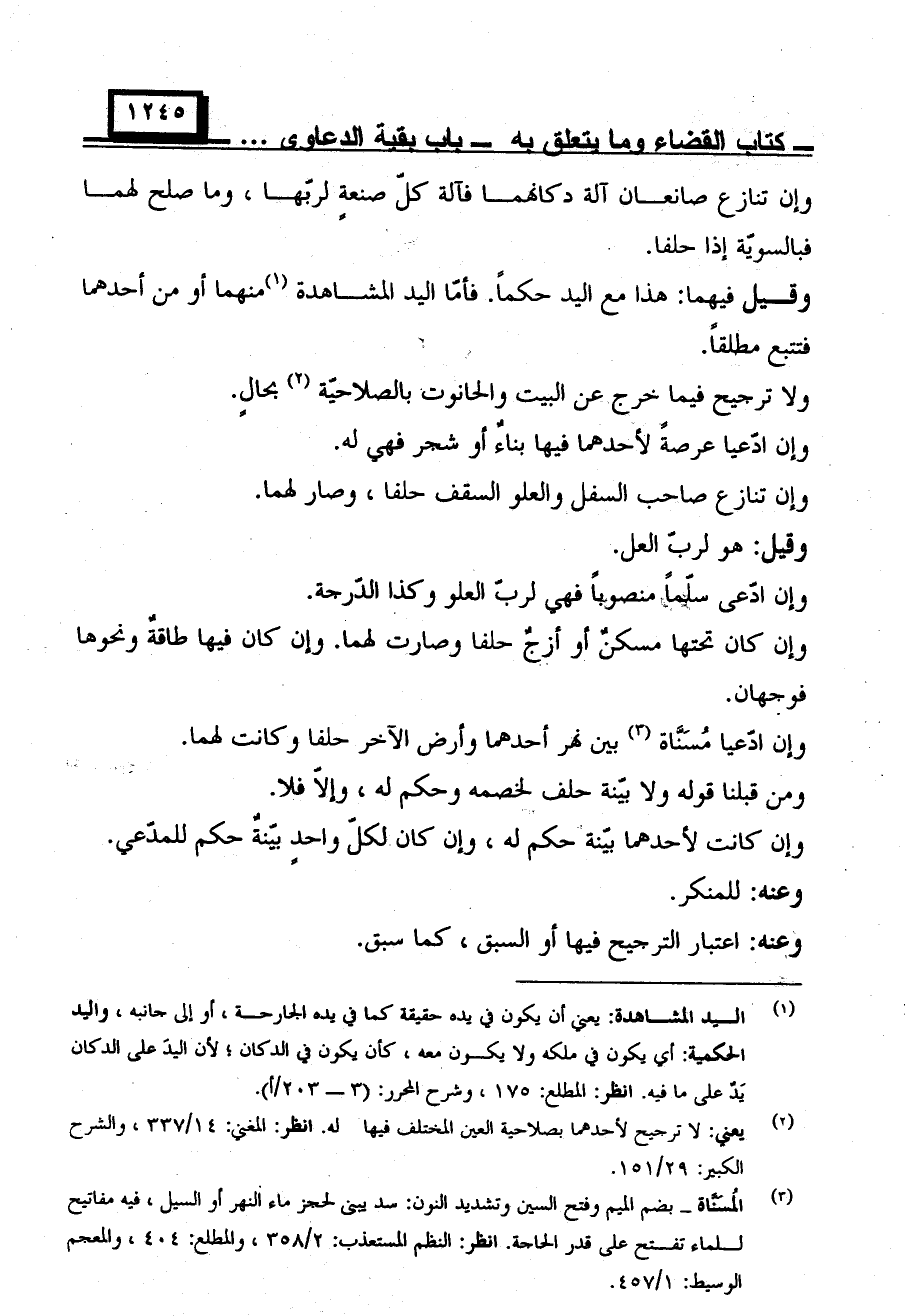 وإن ادعى سلمًا منصوبًا فهي لرب العلو وكذا الدرجة.