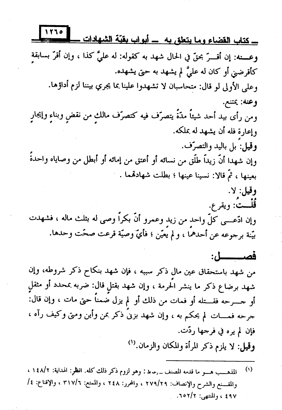 من شهد باستحقاق عين مال ذكر سببه، فإن شهد بنكاح ذكر شروطه، وإن شهد برضاع ذكر ما ينشر الحرمة، وإن شهد بقتل قال: ضربه بمحدد أو مثقل أو جرحه فقتله أو فمات من ذلك أو لم يزل ضمنًا حتى مات، وإن قال: جرحه فمات لم يحكم به، وإن شهد بزنى ذكر بمن وأين ومتى وكيف رآه، فإن لم يره في فرجها ردّت.