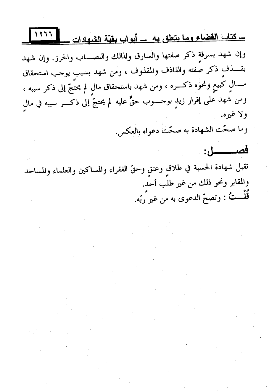 تقبل شهادة الحسبة في طلاق وعتق وحق الفقراء والمساكين والعلماء والمساجد والمقابر ونحو ذلك من غير طلب أحد.