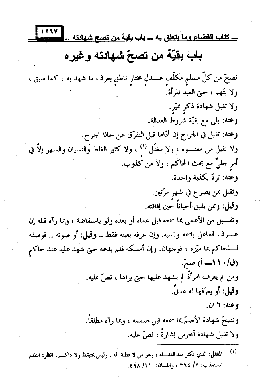 ولا تقبل من معتوه، ولا مغفلّ، ولا كثير الغلط والنسيان والسهو إلا في أمر جليٍّ مع بحث الحاكم، ولا من كذوب.