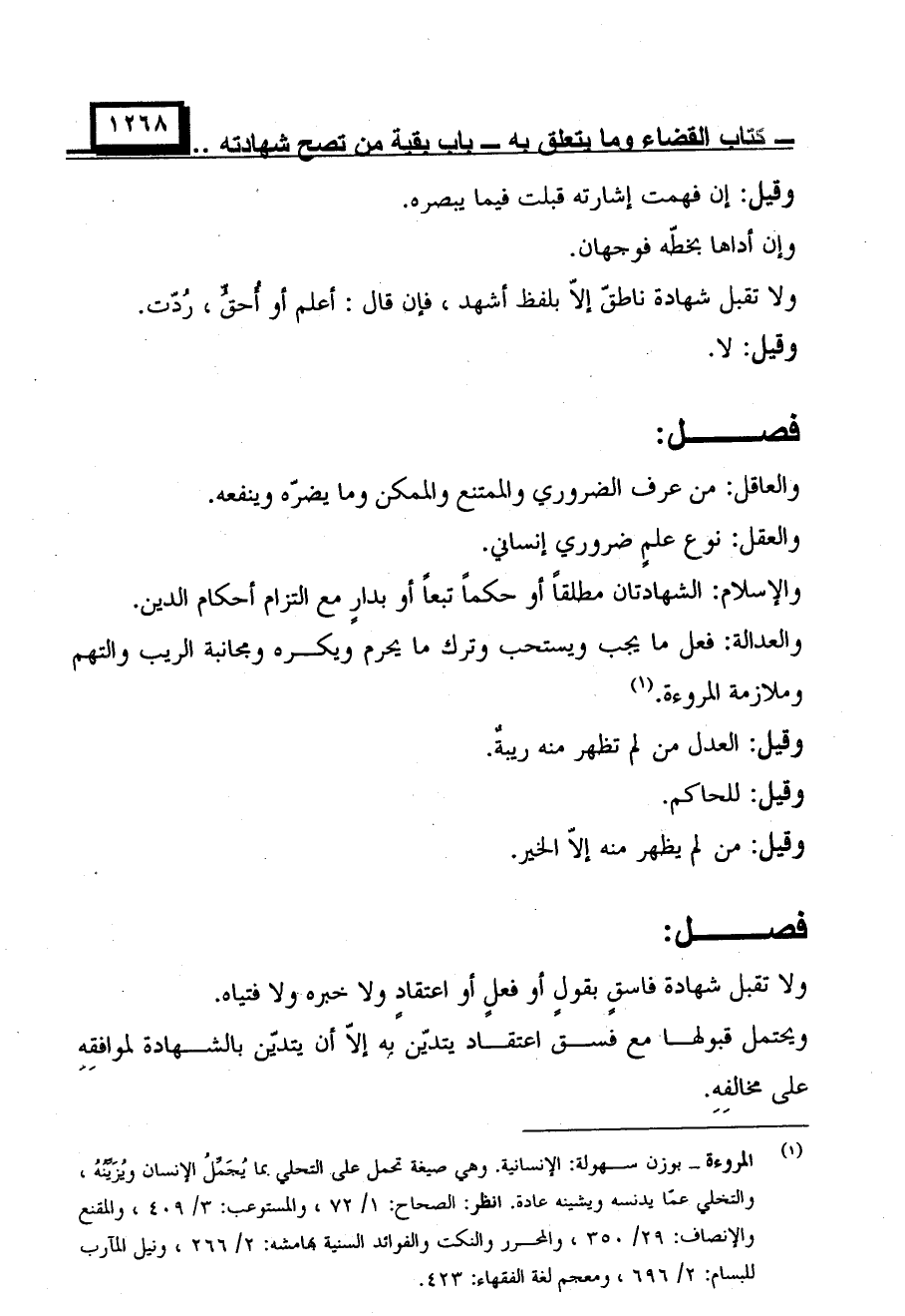 ولا تقبل شهادة فاسق بقول أو فعل أو اعتقاد ولا خبره ولا فتياه.