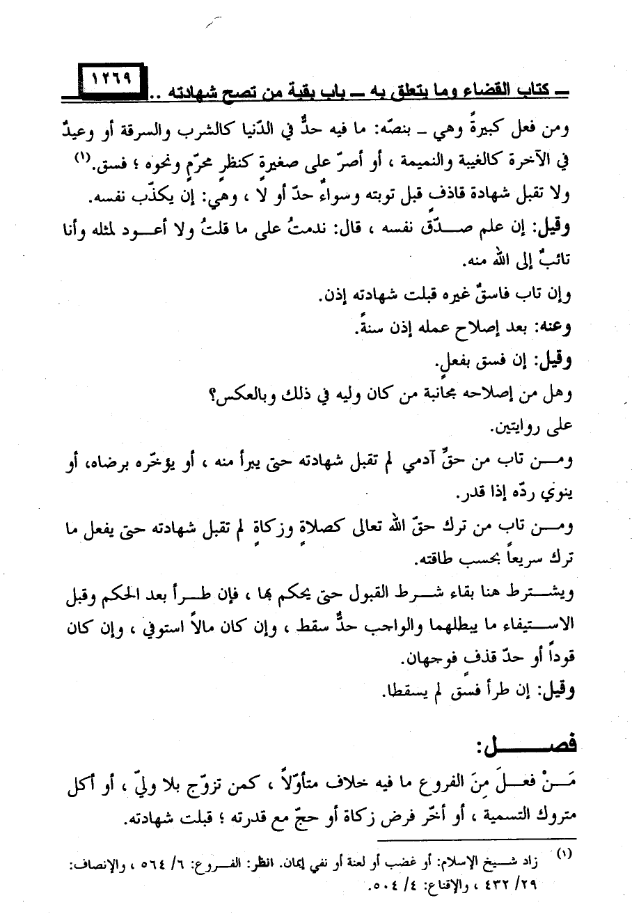 ومن تاب من ترك حق الله تعالى كصلاة وزكاة لم تقبل شهادته حتى يفعل ما ترك سريعًا بحسب طاقته.