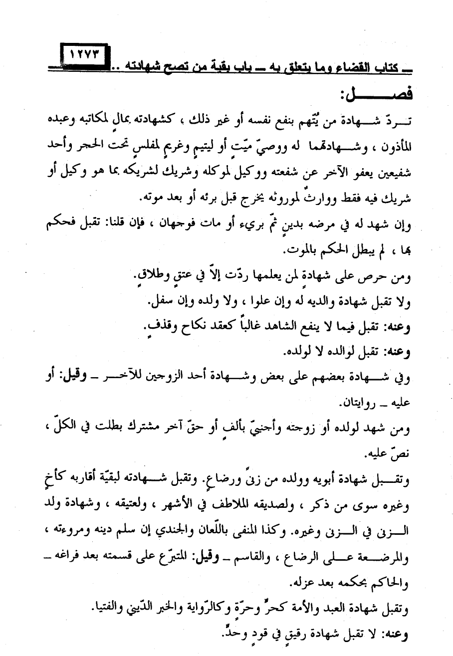 وتقبل شهادة العبد والأمة كحرٍّ وحرّةٍ وكالرّواية والخبر الدّيني والفتيا.