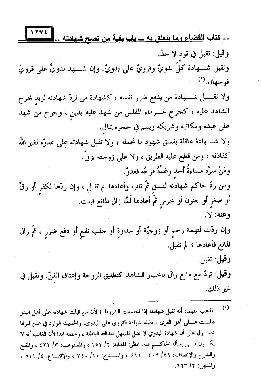 ولا تقبل شهادة من يدفع ضرر نفسه، كشهادة من تردّ شهادته لزيد بجرح الشاهد عليه، كجرح غرماء المفلس من شهد عليه بدين، وجرح من شهد على عبده ومكاتبه وشريكه ويتيم في حجره بمال.