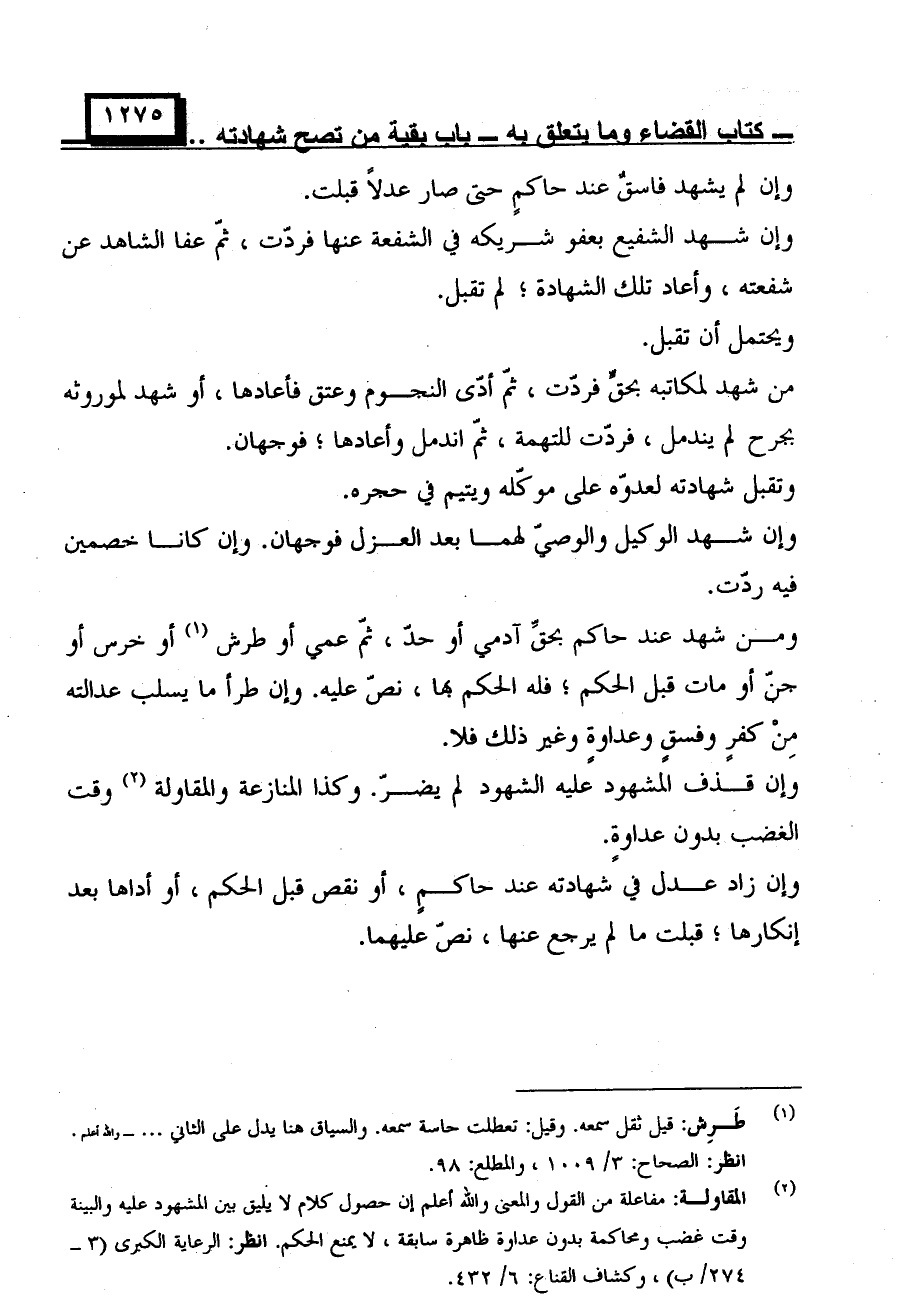وإن قذف المشهود عليه الشهود لم يضرّ. وكذا المنازعة والمقاولة وقت الغضب بدون عداوة.
