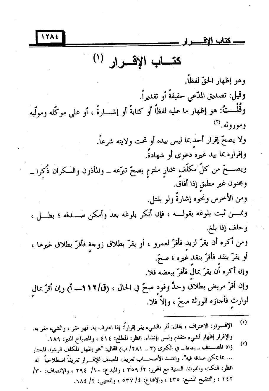 وقلت: هو إظهار ما عليه لفظًا أو كتابةً أو إشارةً، أو على موكّله وموليّه وموروثه.