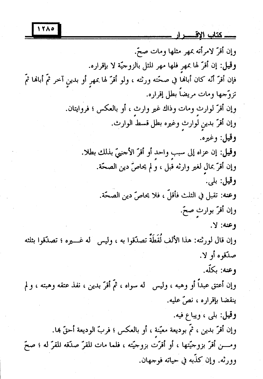 وإن أقر بدين لوارث وغيره بطل قسط الوارث.