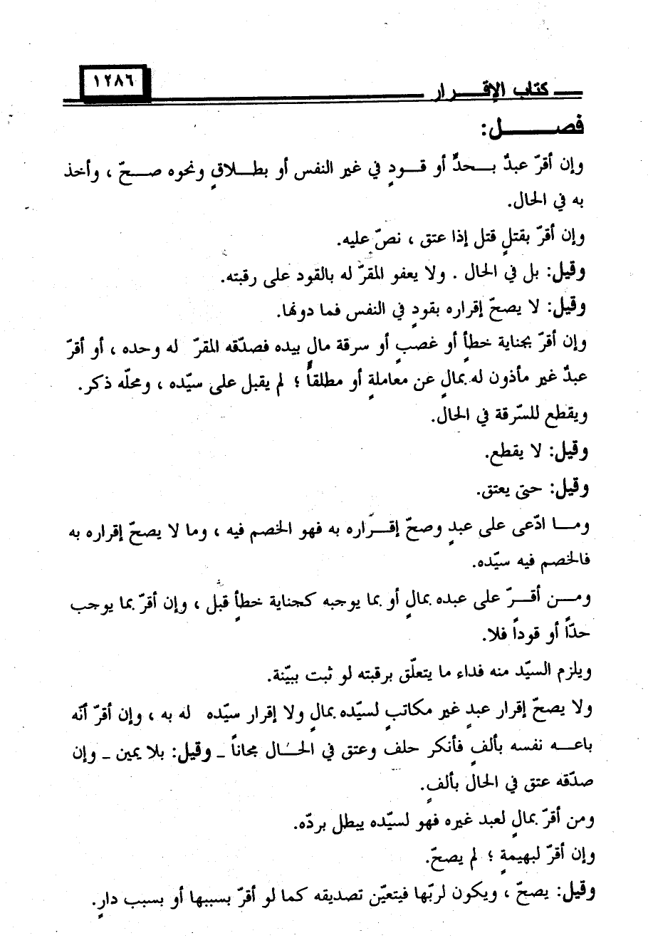 وقيل: بل ف الحال. ولا يعفو المقرّ له بالقود على رقبته.