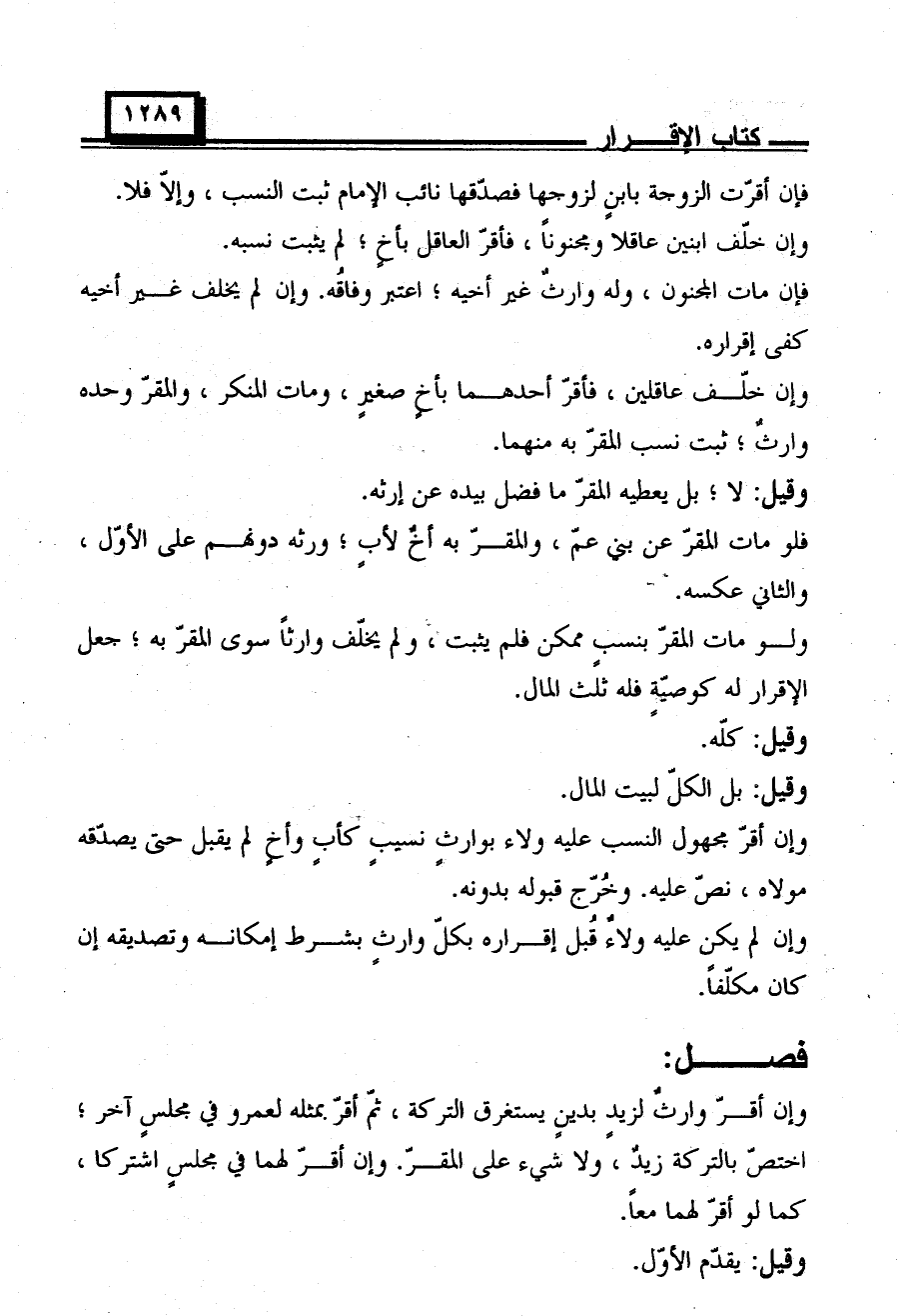 وإن خلّف ابنين عاقلًا ومجنونًا، فأقرّ العاقل بأخٍ؛ لم يثبت نسبه.