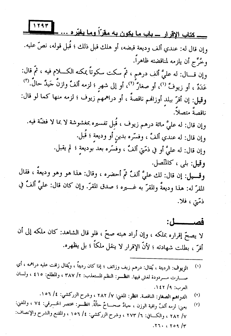 وقيل: إن قال: لك عليّ ألفٌ ثم أحضره، وقال: هذا هو وهو وديعة، فقال المقر له: هذا وديعة والمقر به غيره؛ صدق المقر. وإن كان قال: عليّ ألف في ذمتي، فلا.