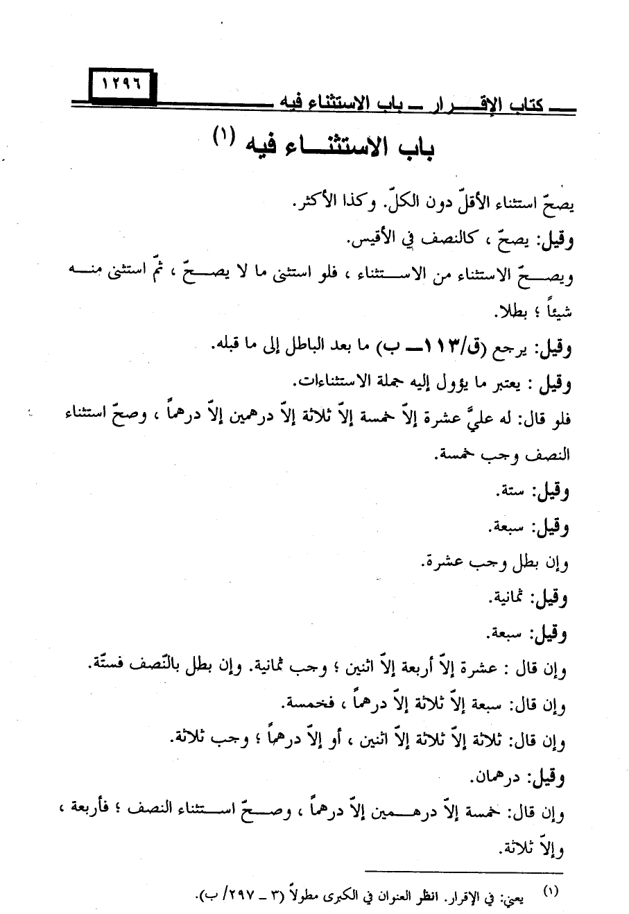 وقيل: يعتبر ما يؤول إليه جملة الاستثناءات.