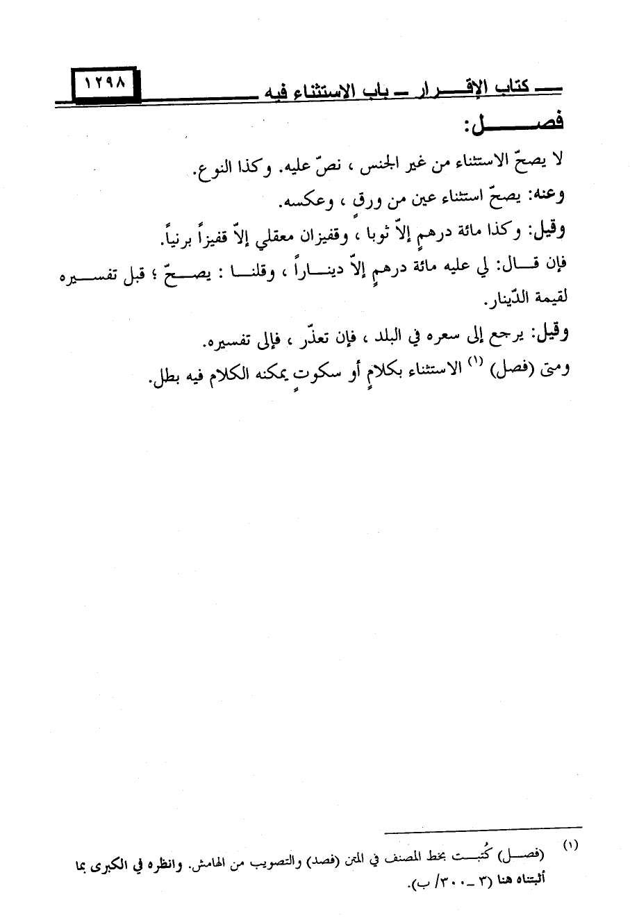 وقيل: وكذا مائة درهم إلا ثوبا، وقفيزان معقلي إلا قفيزًا برنيًا.