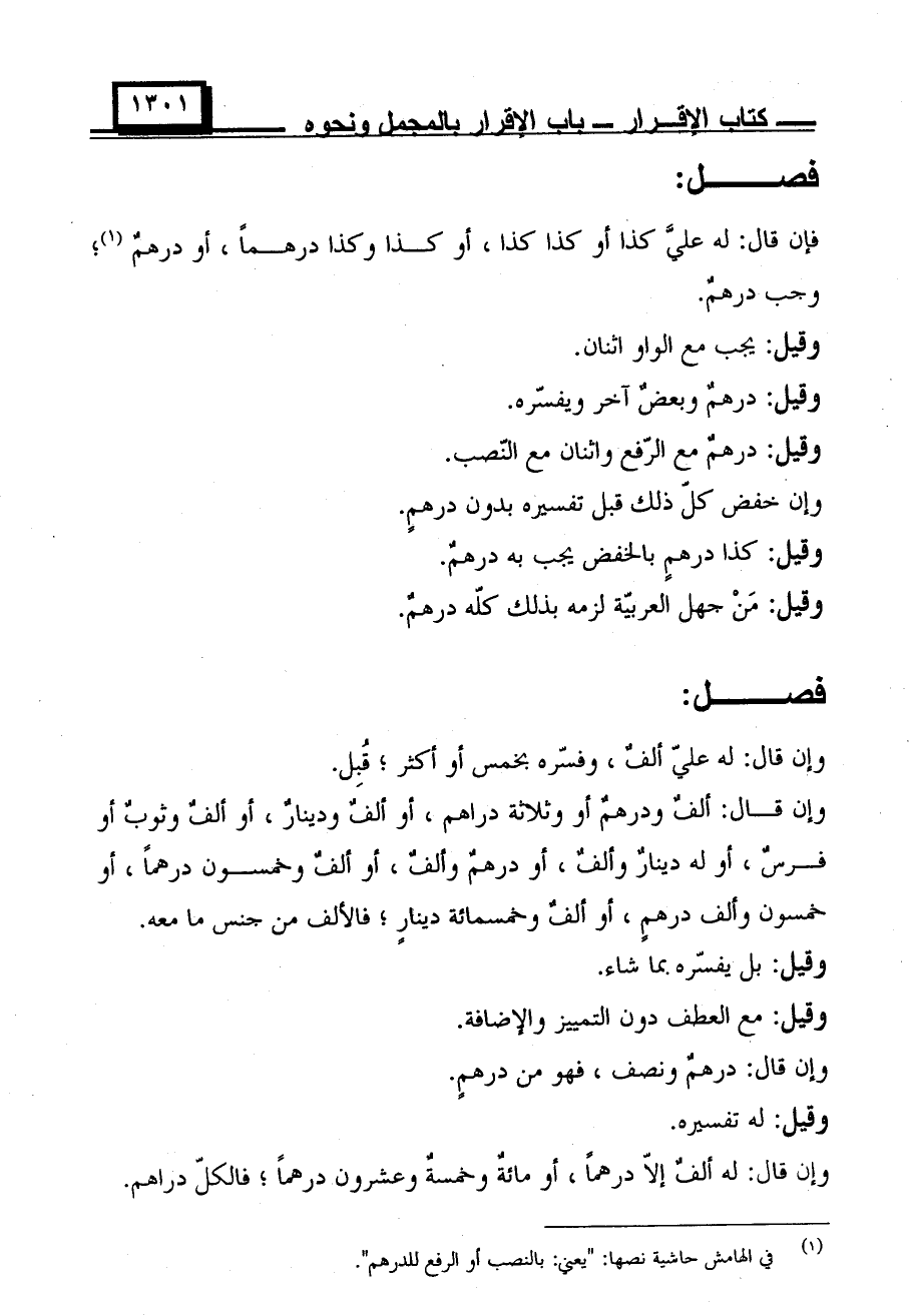 وقيل: كذا درهم بالخفض يجب به درهم.
