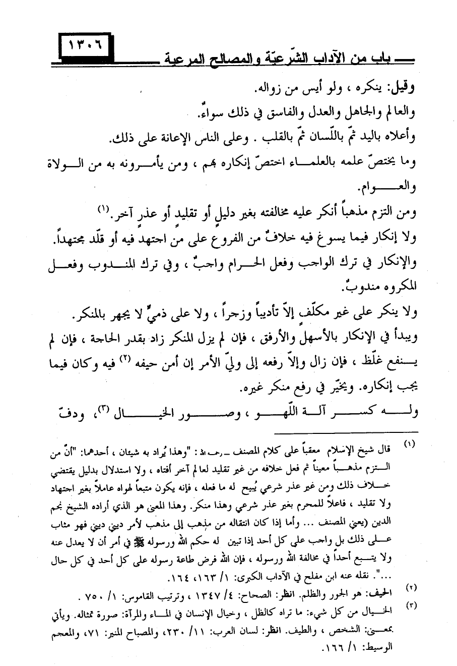 ومن التزم مذهبًا أنكر عليه مخالفته بغير دليل أو تقليد أو عذر آخر.