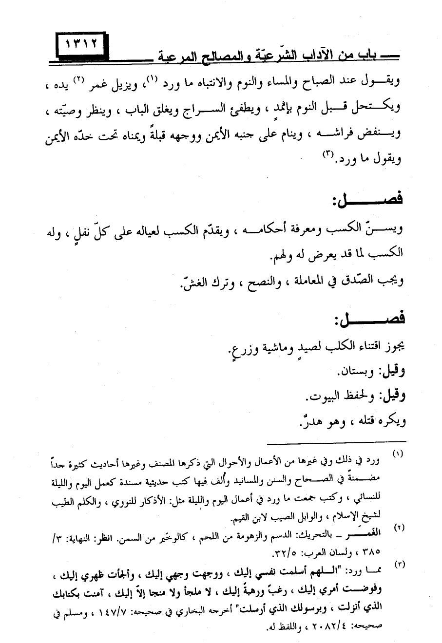 ويسن الكسب ومعرفة أحكامه، ويقدّم الكسب لعياله على كلّ نفل، وله الكسب لما قد يعرض له ولهم.