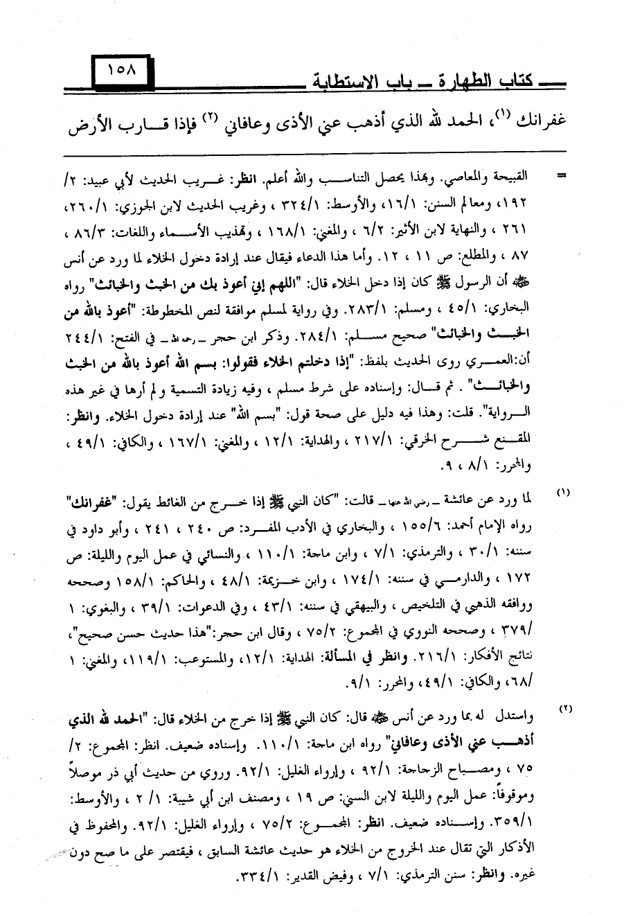 غفرانك، الحمد لله الذي أذهب عني الأذى وعافاني فإذا قارب الأرض