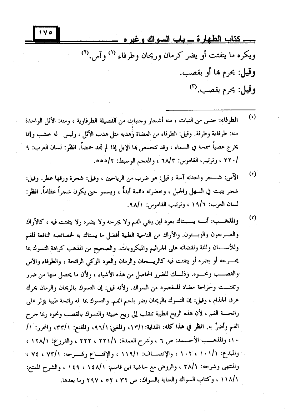 ويكره ما يتفتت أو يضر كرمان وريحان وطرفاء وآس.