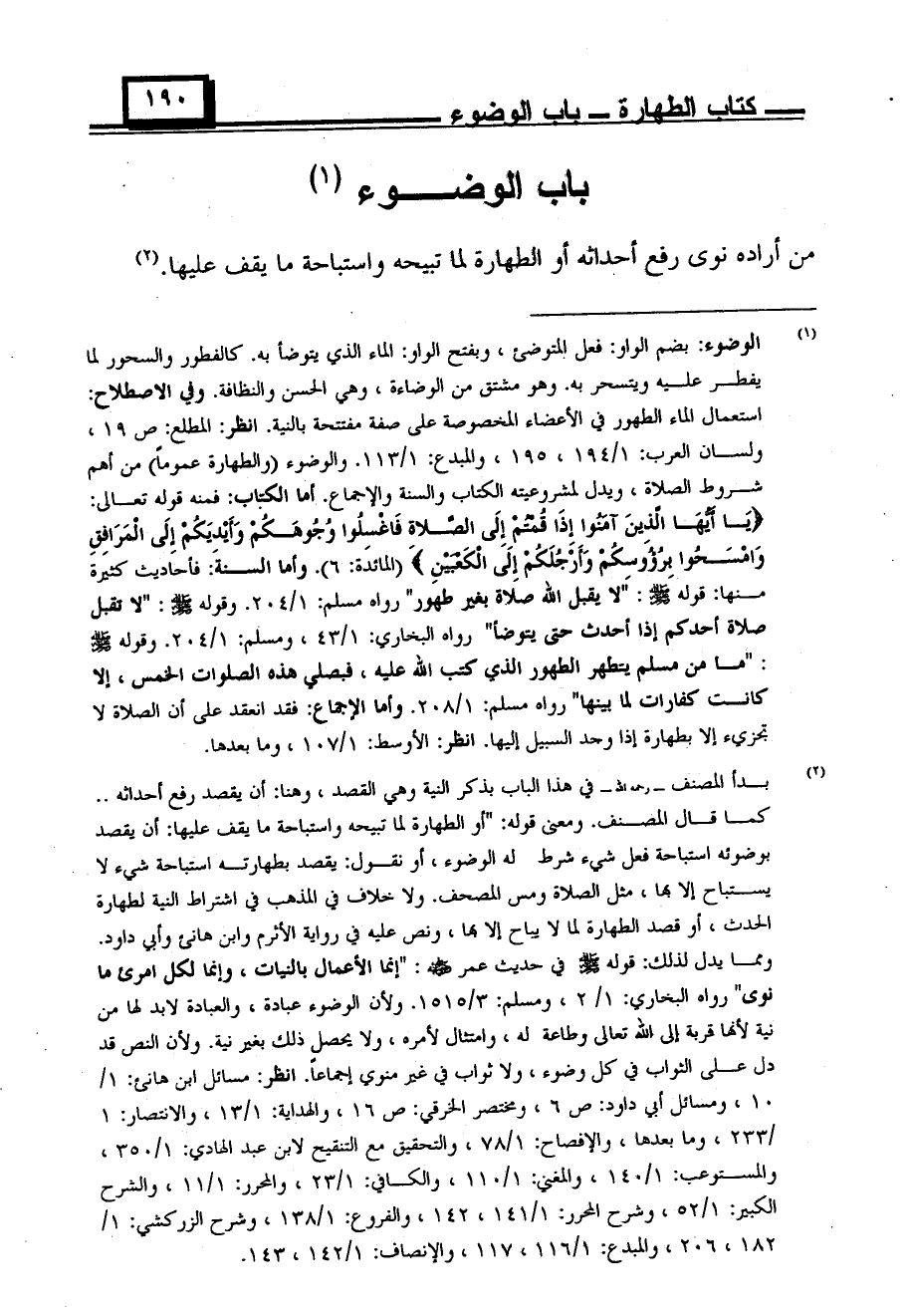 من أراده نوى رفع أحداثه أو الطهارة لما تبيحه واستباحة ما يقف عليها.