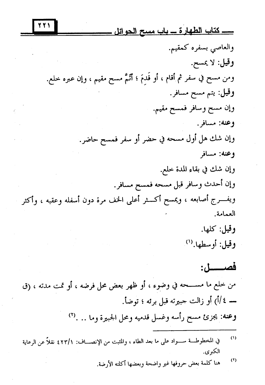 وقيل: يتم مسح مسافر.