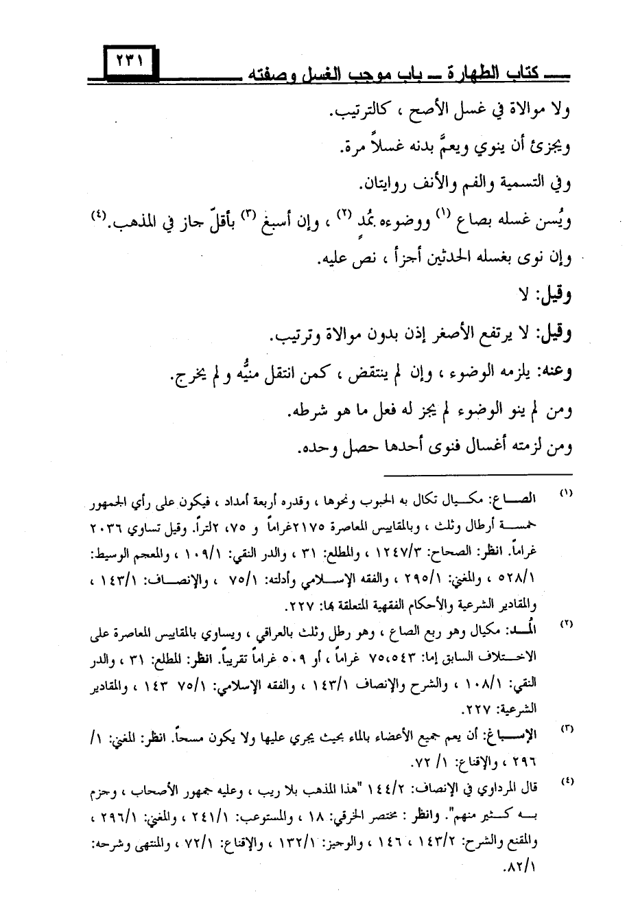 ويسن غسله بصاع ووضوءه بمد، وإن أسبغ بأقل جاز في المذهب.