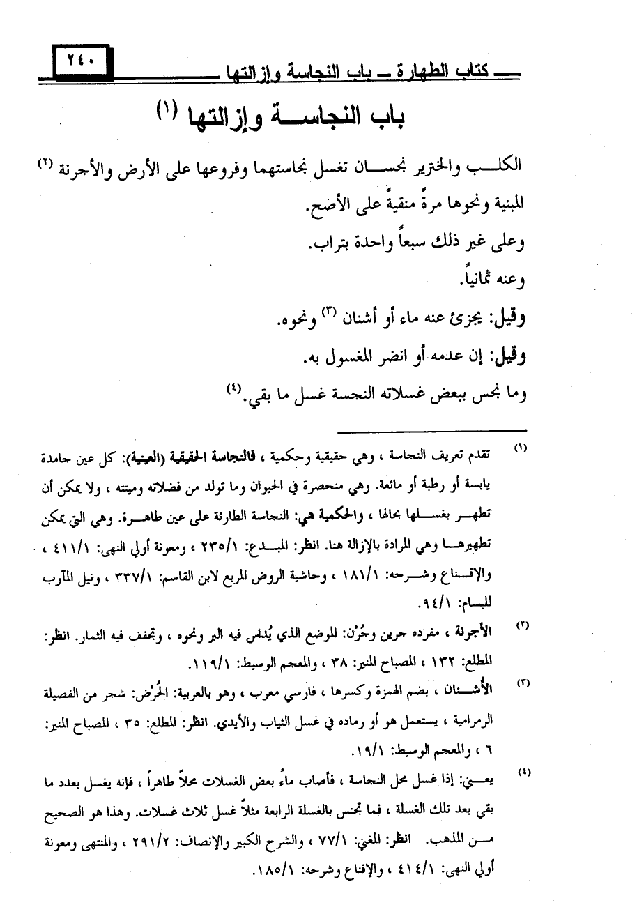 الكلب والخنزير نجسان تغسل نجاستهما وفروعها على الأرض والأجرنة المبنية ونحوها مرة منقية على الأصح.
