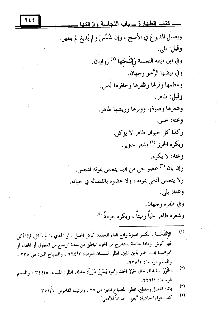 وشعرها وصوفها ووبرها وريشها طاهر.