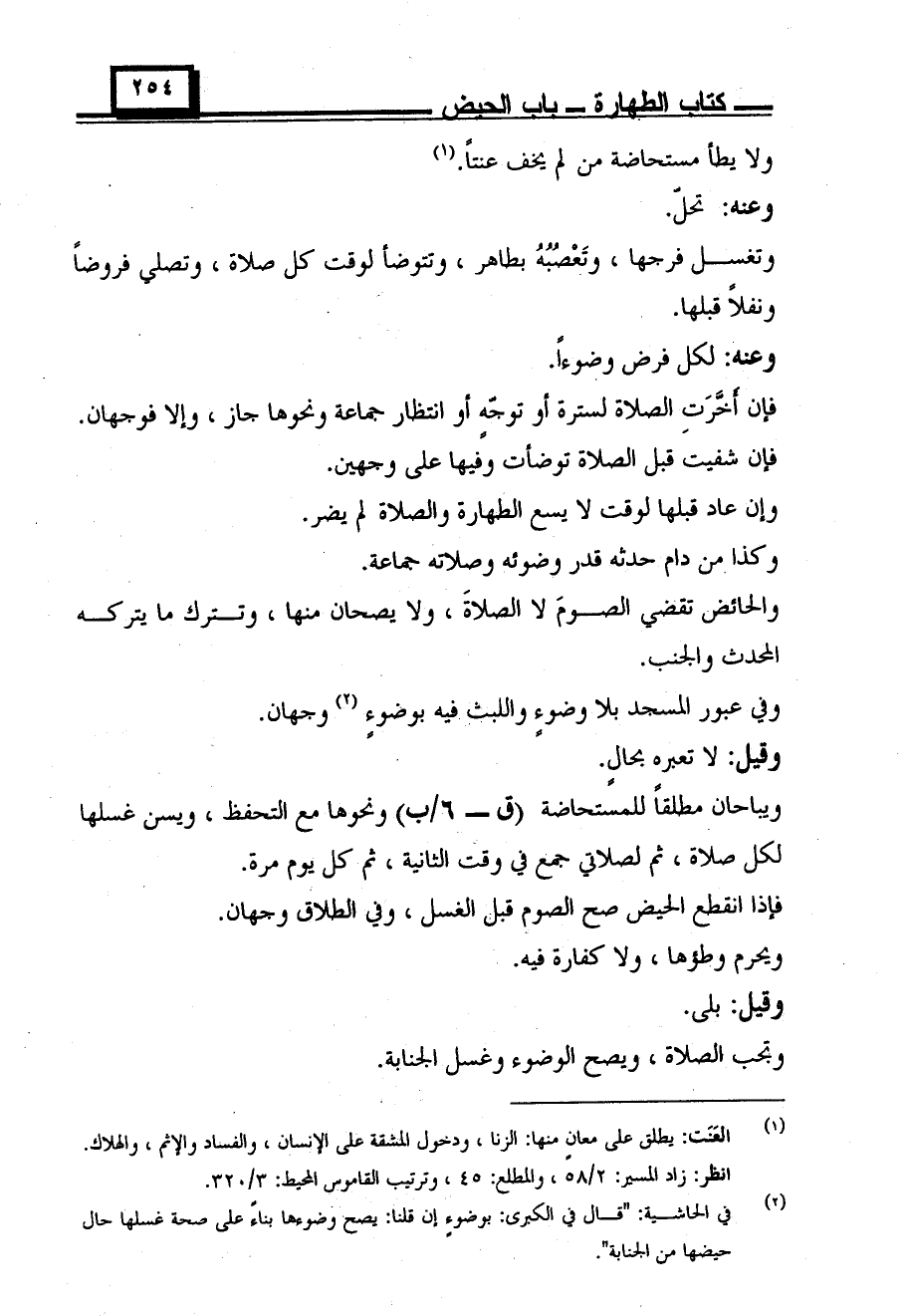 ويباحان مطلقا للمستحاضة (ق-٦/ب) ونحوها مع التحفظ، ويسن غسلها لكل صلاة، ثم لصلاتي جمع في وقت الثانية، ثم كل يوم مرة.