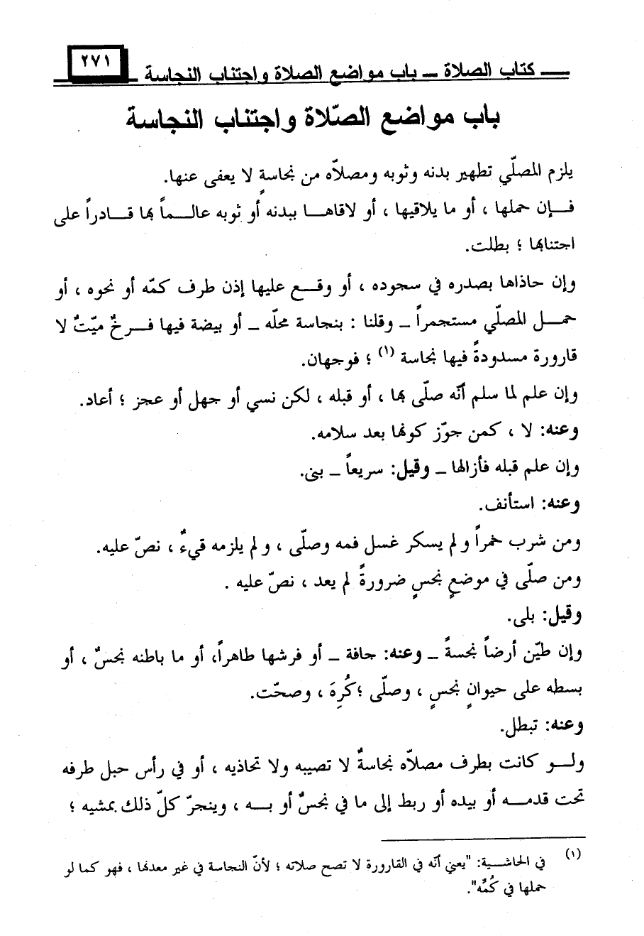 باب مواضع الصلاة واجتناب النجاسة.