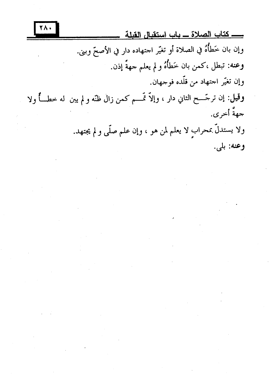 ولا يستدل بمحراب لا يعلم لمن هو، وإن علم صلى ولم يجتهد.