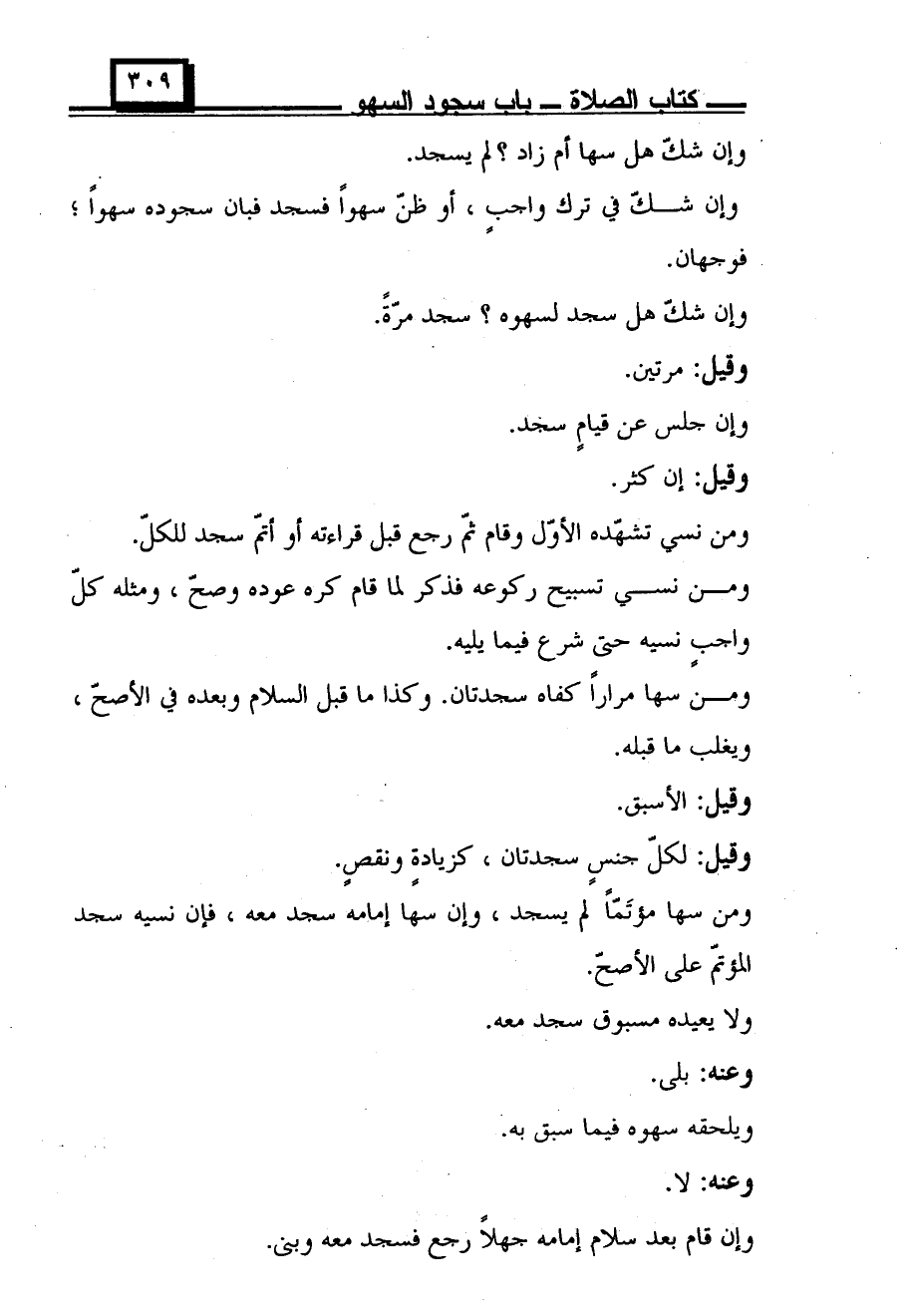 وإن شك هل سجد لسهوه؟ سجد مرة.