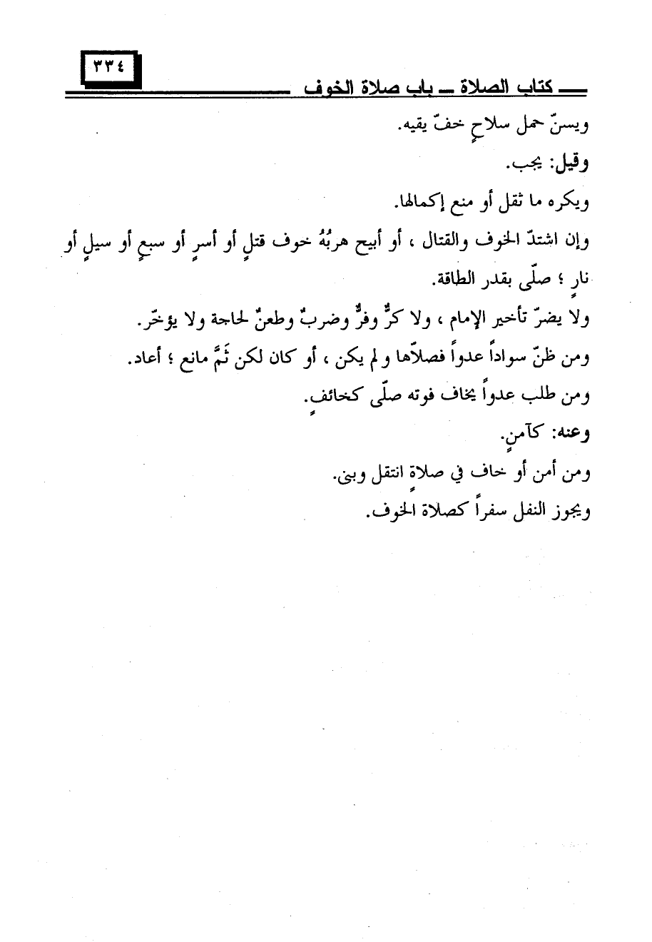 وإن اشتد الخوف والقتال، أو أبيح هربه خوف قتٍل أو أسٍر أو سبٍع أو سيٍل أو ناٍر؛ صلى بقدر الطاقة.