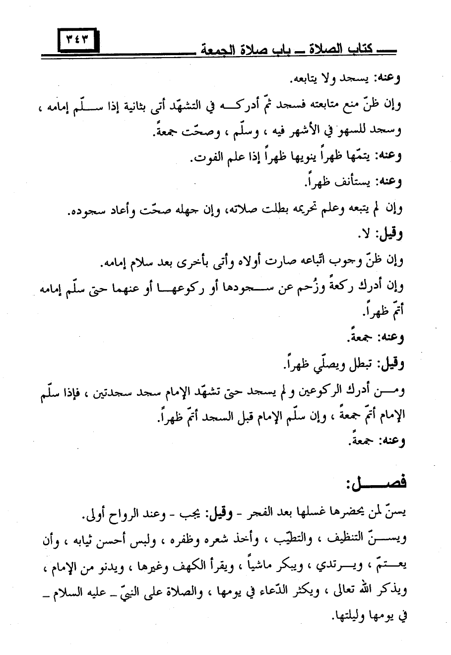 ومن أدرك الركوعين ولم يسجد حتى تشهد الإمام سجد سجدتين، فإذا سلم الإمام أتم جمعًة، وإن سلم الإمام قبل السجد أتم ظهرًا.