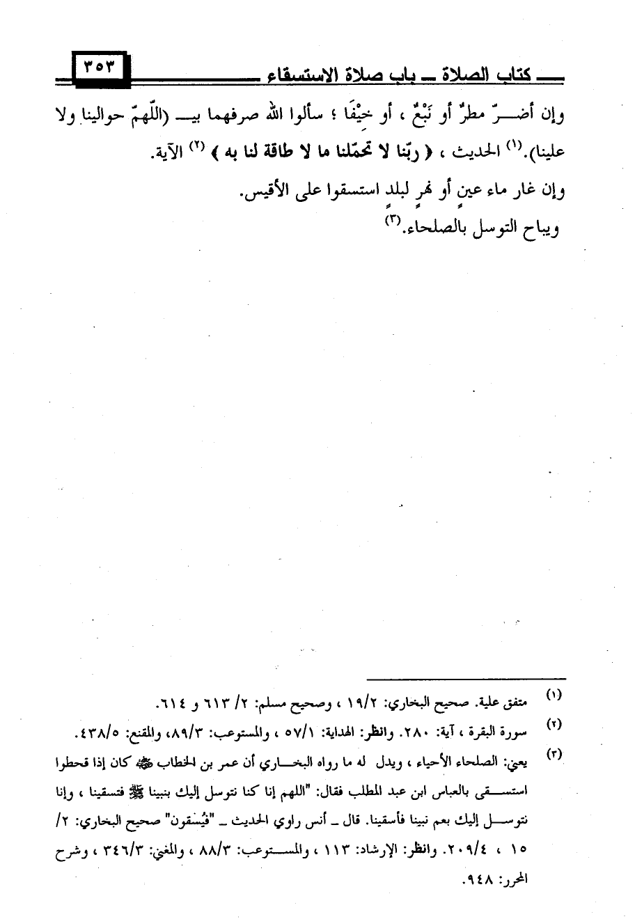 وإن أضر مطر أو نبع، أو خيفا؛ سألوا الله صرفهما بيـ (اللهم حوالينا ولا علينا). الحديث، {ربنا لا تحملنا ما لا طاقة لنا به} الآية.
