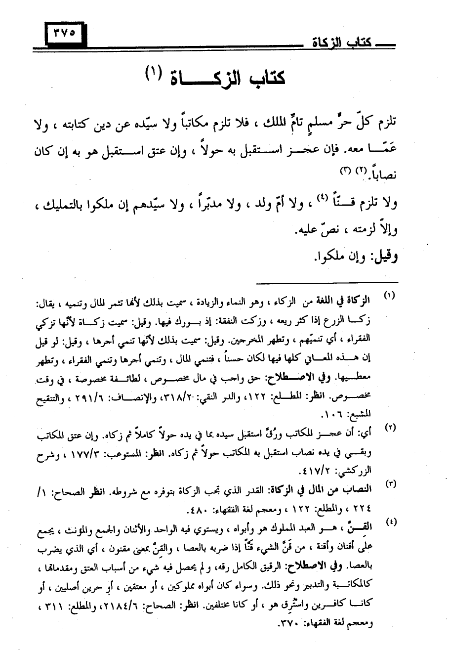 تلزم كل حر مسلمٍ تام الملك، فلا تلزم مكاتبًا ولا سيده عن دين كتابته، ولا عما معه. فإن عجز استقبل به حولًا، وإن عتق استقبل هو به إن كان نصابًا.