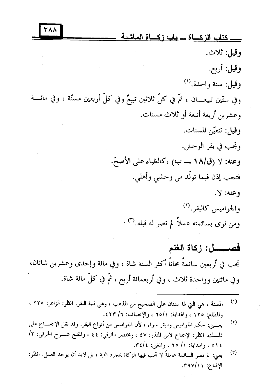 تجب في أربعين سائمًة مجانًا أكثر السنة شاة، وفي مائة وإحدى وعشرين شاتان، وفي مائتين وواحدة ثلاث، وفي أربعمائة أربع، ثم في كل مائة شاة.