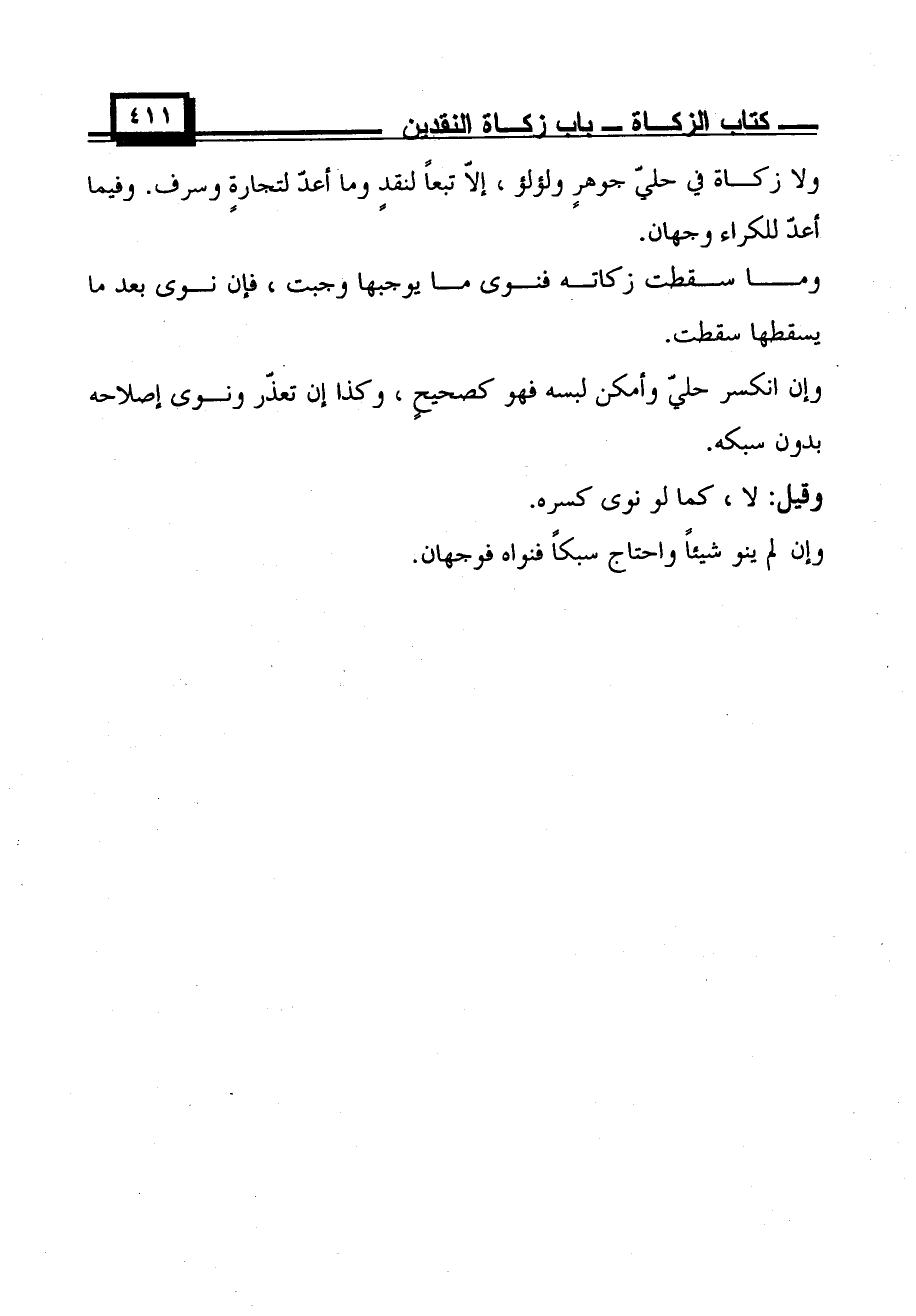 ولا زكاة في حلي جوهرٍ ولؤلؤ، إلا تبعًا لنقدٍ وما اعد لتجارةٍ وسرف. وفيما أعد للكراء وجهان.