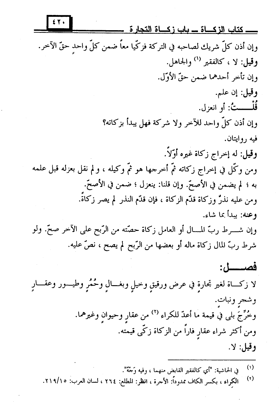 لا زكاة لغير تجارةٍ في عرض ورقيقٍ وخيلٍ وبغالٍ وحمرٍ وطيور وعقارٍ وشجرٍ ونباتٍ.