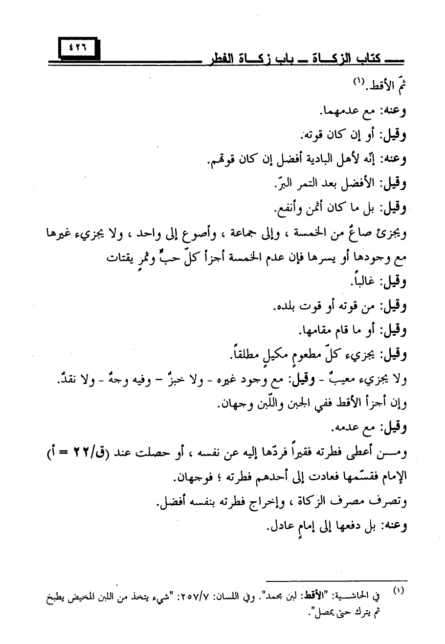 ومن أعطى فطرته فقيرًا فردها إليه عن نفسه، أو حصلت عند الإمام فقسمها فعادت إلى أحدهم فطرته؛ فوجهان.