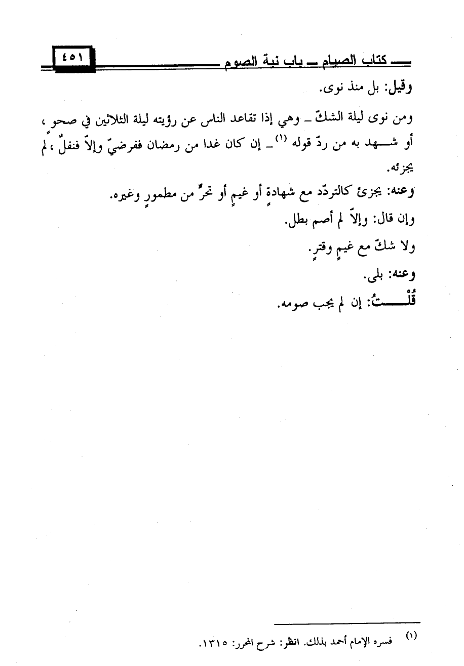 ومن نوى ليلة الشك- وهي إذا تقاعد الناس عن رؤيته ليلة الثلاثين في صحوٍ، أو شهد به من رد قوله- إن كان غدا من رمضان ففرضي وإلا فنقل، لم يجزئه.