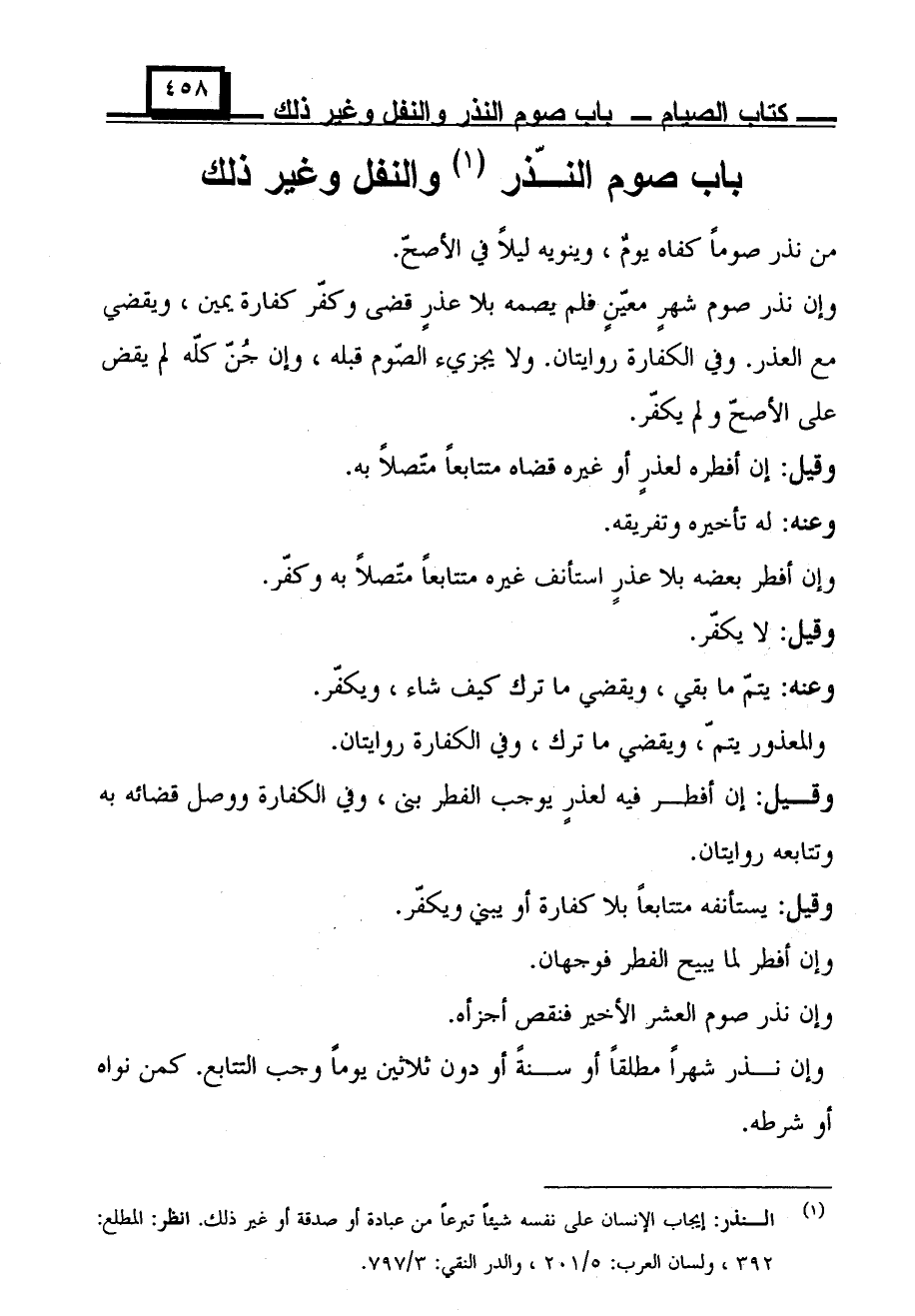 باب صوم النذر والنقل وغير ذلك